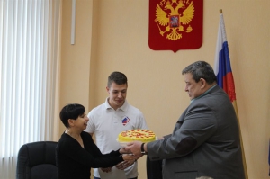 Сегодня в зале заседаний городской администрации мэр Саянска Олег Боровский принимал за чашкой чая городскую команду КВН «Камикадзе» с их руководителем Мариной Вологдиной и помощником Виктором Воронковым.