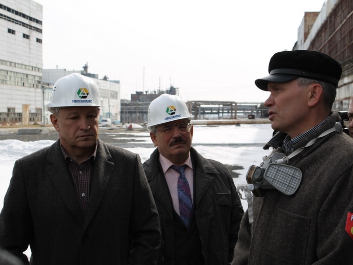 Первым пунктом стало посещение градообразующего предприятия – АО «Саянскхимпласт», где с 13 марта остановлено производство каустической соды и ПВХ. Это стало следствием случившейся в феврале аварии на АО «Ангарский завод полимеров», входящем в структуру ОАО «НК «Роснефть», и прекращением поставок этилена для АО «Саянскхимпласт». На устранение аварии необходимо три месяца.
