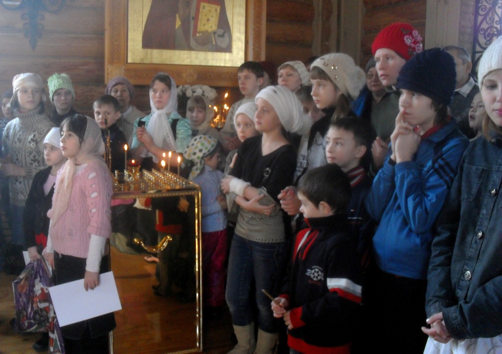 Награждению участников конкурса предшествовал благодарственный молебен. Со словами приветствия к детям обратился священник Владимир Данилко. "А знаете ли вы, - спросил он, - кто является прообразом Деда Мороза? Это живший в четвертом веке по Рождестве Христовом святитель Николай Чудотворец. Он прославился добрыми делами во время своей земной жизни и ныне никого не оставляет без помощи. Каждый из нас может почувствовать это, обратившись к святителю Николаю. Не письма Деду Морозу надо писать, а помолиться у образа Николая Чудотворца". И многие из пришедших в Храм, воспользовавшись возможностью, поставили свечечки у образа святого.