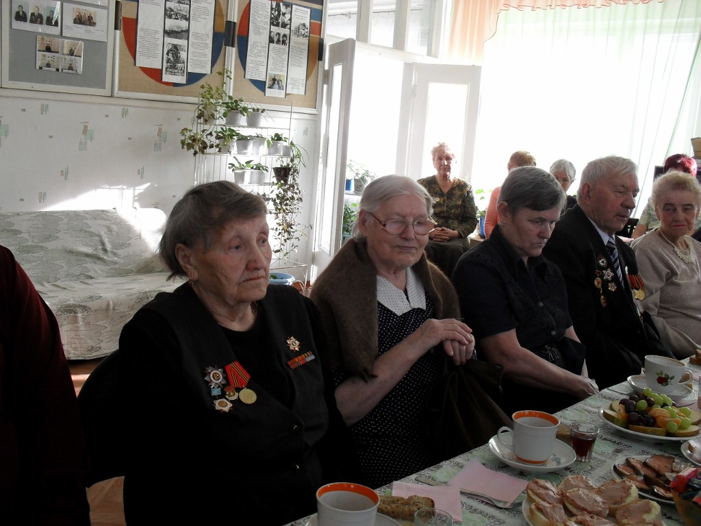 В городском Совете ветеранов встречались бывшие фронтовики. Встреча участников Великой Отечественной войны была посвящена годовщине разгрома гитлеровских полчищ у Сталинграда и снятию блокады Ленинграда. Рядом с нами живут участники этих исторических событий. Саянцами являются сегодня шесть жителей блокадного Ленинграда (в 1941 – 1944 годах все они были детьми) и шесть фронтовиков, воевавших на Ленинградском, Волховском и 2-ом Прибалтийском фронтах. Среди последних – Евгений Тимофеевич Зуев, Леонид Порфирьевич Потёмкин и Григорий Ефимович Марков. Евстолия Валентиновна Грачёва была солдатом медсанбата, который входил в состав 7-ой Отдельной армии, сражавшейся с врагом в районе реки Свирь (река соединяет Онежское и Ладожское озёра).