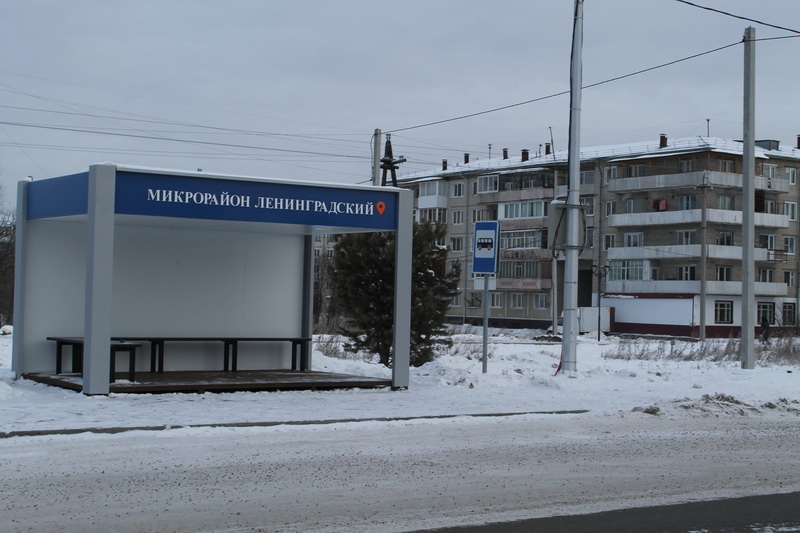 На новых остановочных павильонах, установленных на отремонтированном участке проспекта Ленинградского, появились названия остановок – «Храм Благовещения», «Микрорайон Ленинградский», «Микрорайон 6 А», «Микрорайон Молодежный», «Садовый Центр». Остановка в районе АТП называется «Гаражи». На остановках будет также размещено расписание маршрутов. Весной торцевые стороны павильонов будут закрыты каленым стеклом. Также планируется оборудовать остановки видеонаблюдением.