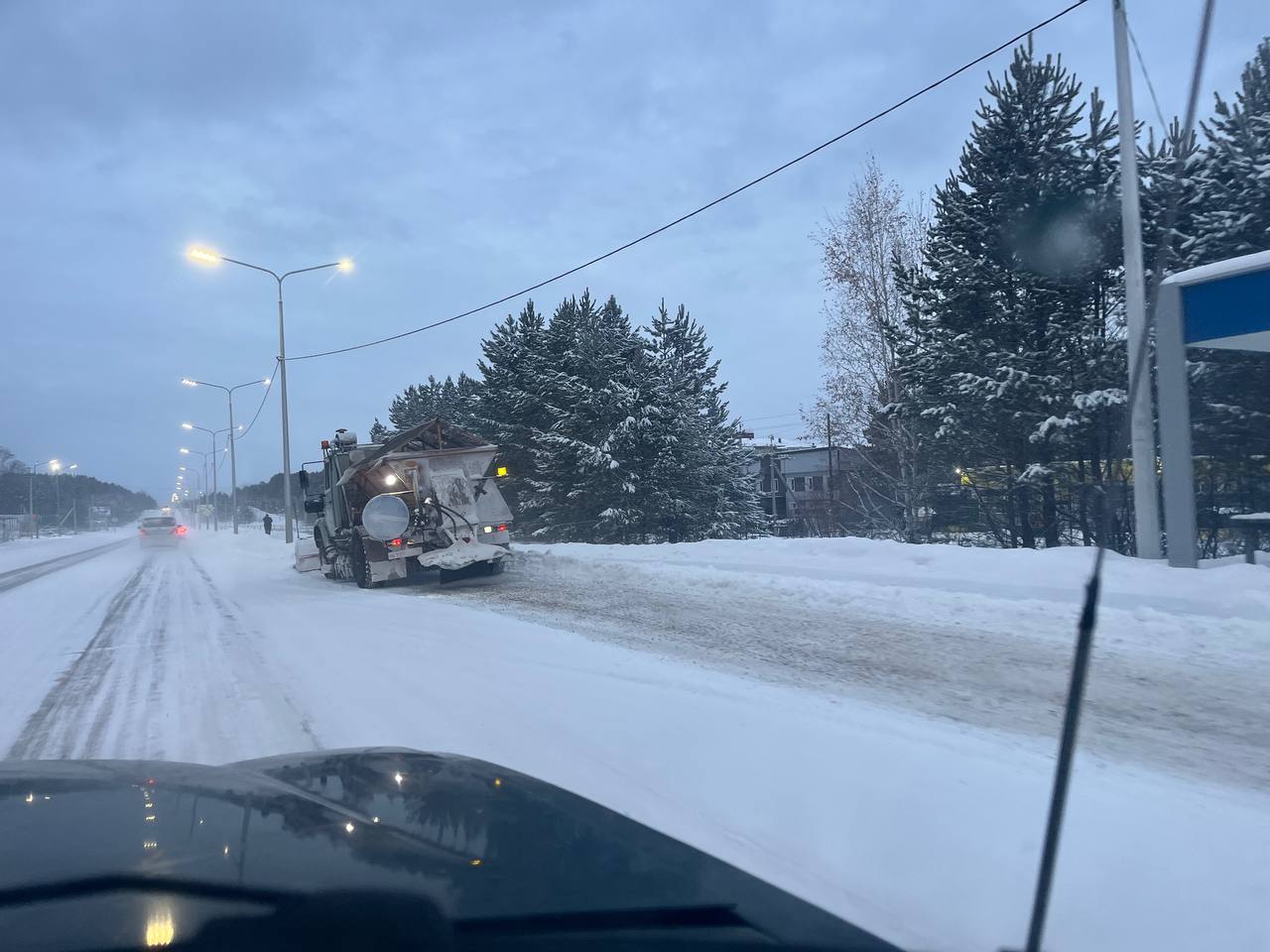Со вчерашнего вечера в Саянске шел снег, сегодня все ресурсы Саянской дорожной службы задействованы в чистке города. Стоит отметить, что реагенты (техническая соль) в нашем городе не используется, только песок и щебень!