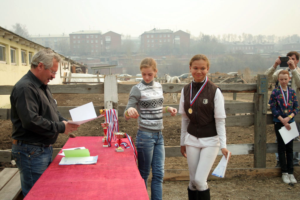 В итоге 1 место на приз Федерации Конного Спорта г. Иркутска (конкур до 100 см), занял Щербаков Денис на коне Лавре. Успешно защитили третий юношеский разряд по конкуру Бабкина Екатерина и Федорова Екатерина. А по итогам соревнований Бабкина Екатерина заняла второе место в конкуре до 65 см.