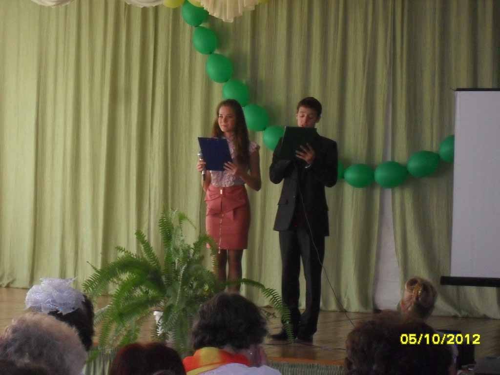 Ученики школы, как полагается, тоже не оставили педагогов без внимания, порадовав весёлыми сценками, песнями под гитару и конкурсами для учителей.