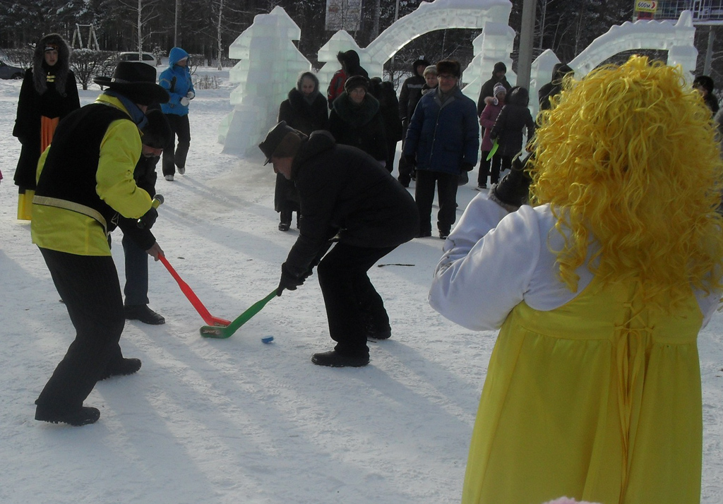 13 января в Снежном городке вновь встречали Новый год и провожали старый. В этот раз праздновать саянцам помогал цыганский табор. Молодому поколению больше были интересны штурм большой горки и катание на лошадях, а люди зрелые — увлечённо участвовали в конкурсах, водили хороводы, играли в хоккей детскими клюшками и смотрели концертные номера.