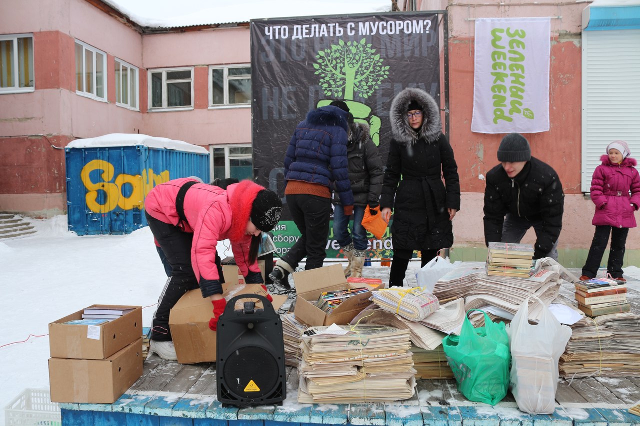 Преврати мусор во вторсырье – сохрани чистоту природы. В субботу 15 февраля в Саянске прошел первый этап экологической акции по раздельному сбору мусора в рамках всероссийского проекта «Зеленый Weekend», который стал во многих городах Российской Федерации основным мероприятием проекта Российского Гринпис «Вторая жизнь вещей». Волонтеры некоммерческого партнерства «Саянцы.ру» совместно с Романом Страхом, руководителем отдела по сбору и транспортировке ТБО, организовали сбор макулатуры, стекла и пластика. Целью акции стало желание жителей города уменьшить негативное воздействие твердых бытовых отходов на окружающую среду путем уменьшения количества непереработанного мусора на свалках, возможность сохранить жизнь деревьям, из древесины которых производятся многие виды бумажных изделий. Помимо волонтеров участие в акции приняли коллектив совета ветеранов и жители города, среди которых были и совсем юные будущие экологи.