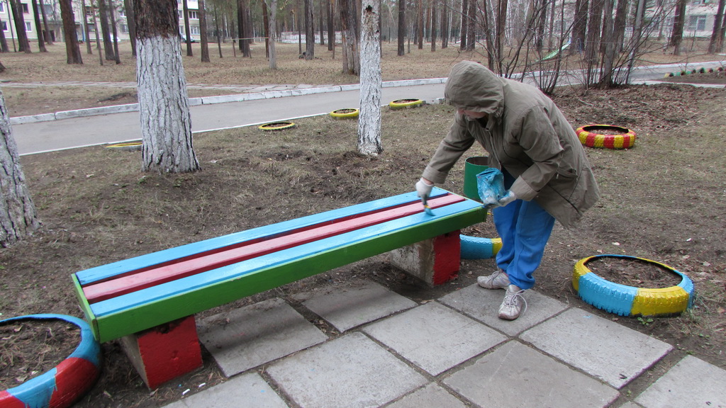 Работать вышли люди всех возрастов – от мала до велика. Каждому нашлось дело. Самый юный помощник, Богдан Костычев, отличился особо. Он принимал участие во всех работах – и мусор собирал, и красил, и граблями работал.