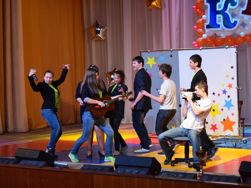 Первыми выступала команда школы №4 «Дружба». Они продемонстрировали разные исторические периоды становления Саянска. А особо запомнились итальянец и гопник, устроившие турнир по танцам «ча-ча-ча». Вторыми выступала команда Гимназии имени Надькина «В отъезде», показав, как ведет себя обычная саянская семья, когда родители в отъезде. Затем на сцене «Юности» показывали свои шутки ребята из команды «Клоп» (школа №3), повеселив зрителей миниатюрой «Битва экстрасенсов». После пришел черед выступления команды «Вай фай» (школа №6) – участники обсуждали народные инициативы для Саянска. Наконец, очередь выступления дошла до команды «Интеллигент» школы №5, участники которой организовали экскурсию по городу жителю Санкт-Петербурга.