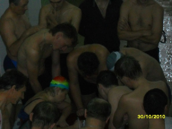 А теперь мои впечатления… Соревнования по плаванью — это тепло во всех смыслах, куча брызг, шумные болельщики, поддерживающие кричалками не только лидеров и не только «своих». Надо сказать мне очень повезло: к началу мужских заплывов по левую и правую сторону от меня материализовались двое мужчин, которые не только эмоционально комментировали заплывы, но и довольно точно предсказывали их результаты. (Ими оказались инструктор по спорту «Саянскхимпласта» Григорашенко А.А. и старший инструктор по спорту Опенко И.В.) Привожу отрывки разговора близко к тексту (дважды извините, диктофона с собой не было).