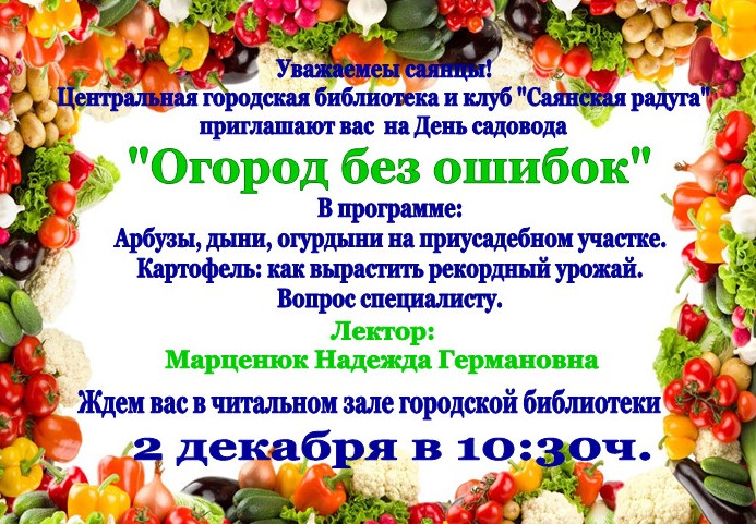Центральная городская библиотека и клуб садоводов «Саянская радуга» приглашают саянцев на День садовода «Огород без ошибок».