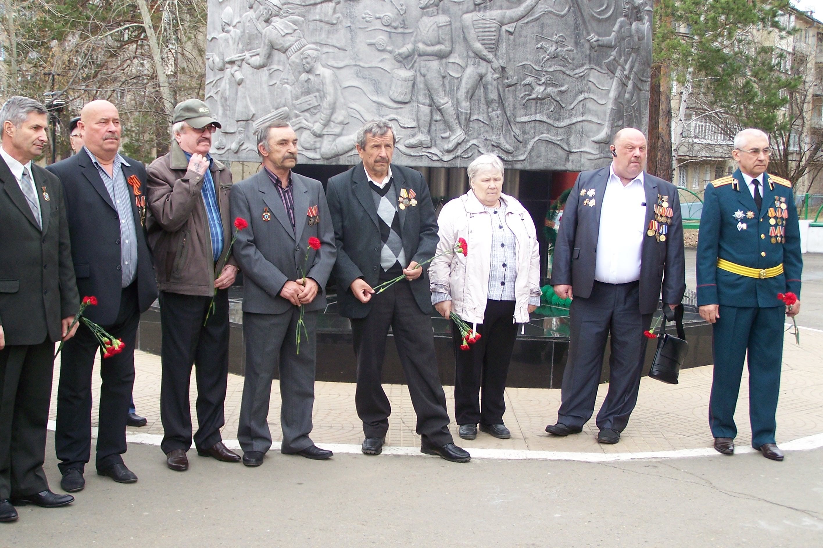 В память о погибших героях была объявлена минута молчания. Митинг завершился возложением цветов.