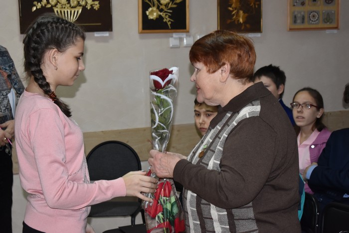Гостем мероприятия стала Антонина Сергеевна Борисова, ребенком она выжила в той блокаде. Школьники преподнесли ей цветы и подарок, выполненный своими руками. Ребята стоя аплодировали женщине в знак почтения и признательности.