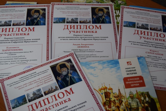 В читальном зале городской библиотеки состоялись просветительские чтения в честь святителя Софрония Иркутского. Мероприятие проходило в рамках православного фестиваля детско-юношеского творчества «Дорогою добра». Организаторами фестиваля выступают Саянская епархия и управление культуры городской администрации. На суд экспертной комиссии участники представили работы-презентации на темы православной истории, культуры, словесности и краеведения.