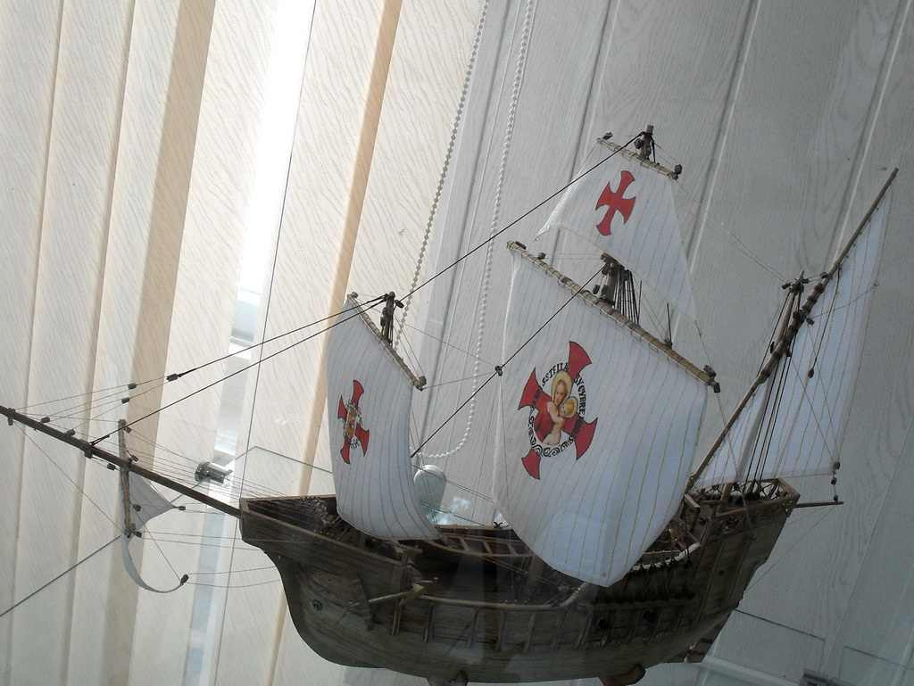Восемь месяцев кропотливого, терпеливого труда потребовалось Дмитрию Семёновичу Таверу для того, чтобы стать обладателем изумительной каравеллы. Взгляните на этот окрылённый парусами корабль! Это точное воспроизведение колумбовой «Санта Марии», на которой великий мореплаватель 12 октября 1492 года впервые подошёл к Америке.