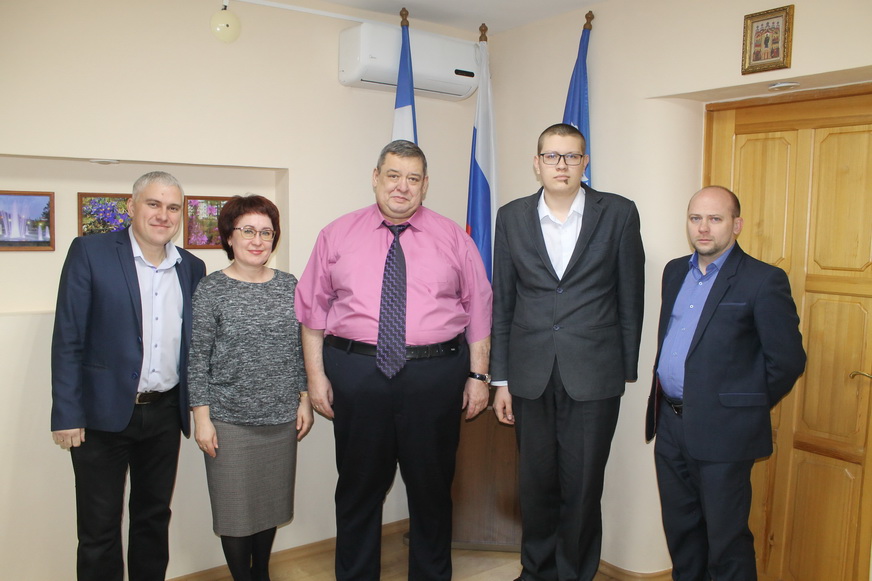 На встрече в администрации Кирилл побывал вместе со своим педагогом Сергеем Овчинниковым, директором школы Виктором Зыковым, начальником управления образования Инной Кузюковой.