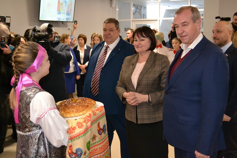 Ленточку торжественно перерезали губернатор Иркутской области Сергей Левченко, министр культуры и архивов Ольга Стасюлевич, генеральный директор АО «Восток-Центр» Александр Сигал, директор ДШИ Наталья Гузенко.