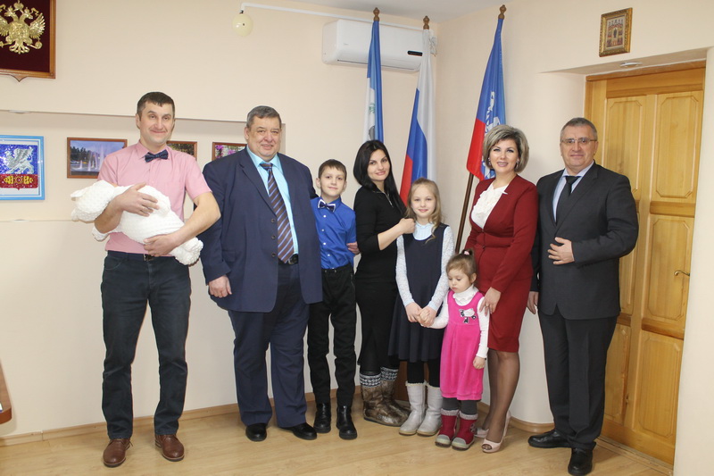 Многодетную семью поздравил заместитель мэра Саянска по социальным вопросам, секретарь Саянского городского отделения партии «Единая Россия» Александр Ермаков, он вручил игрушечный автомобиль для малыша. «Пусть любовью и душевным теплом будет согрет ваш домашний очаг», - сказала начальник саянского отдела службы ЗАГС Марина Дощечкина. Она подарила мягкую игрушку.