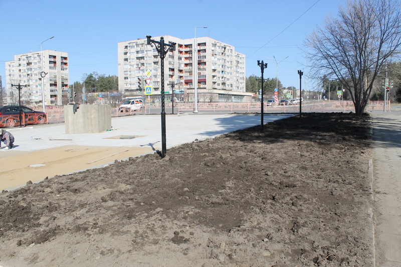Мэр, вместе с заместителем по вопросам жизнеобеспечения города Марией Даниловой, посмотрел, как идут работы в сквере у МУП СТЭП, где будет установлен памятник Ленину. Здесь установлен постамент памятника, завершается укладка тротуарной плитки. По периметру выставлены садово-парковые торшеры, в ближайшее время на них смонтируют светильники. На газоны завозится грунт, в ближайшее время будет посеян клевер и цветы.