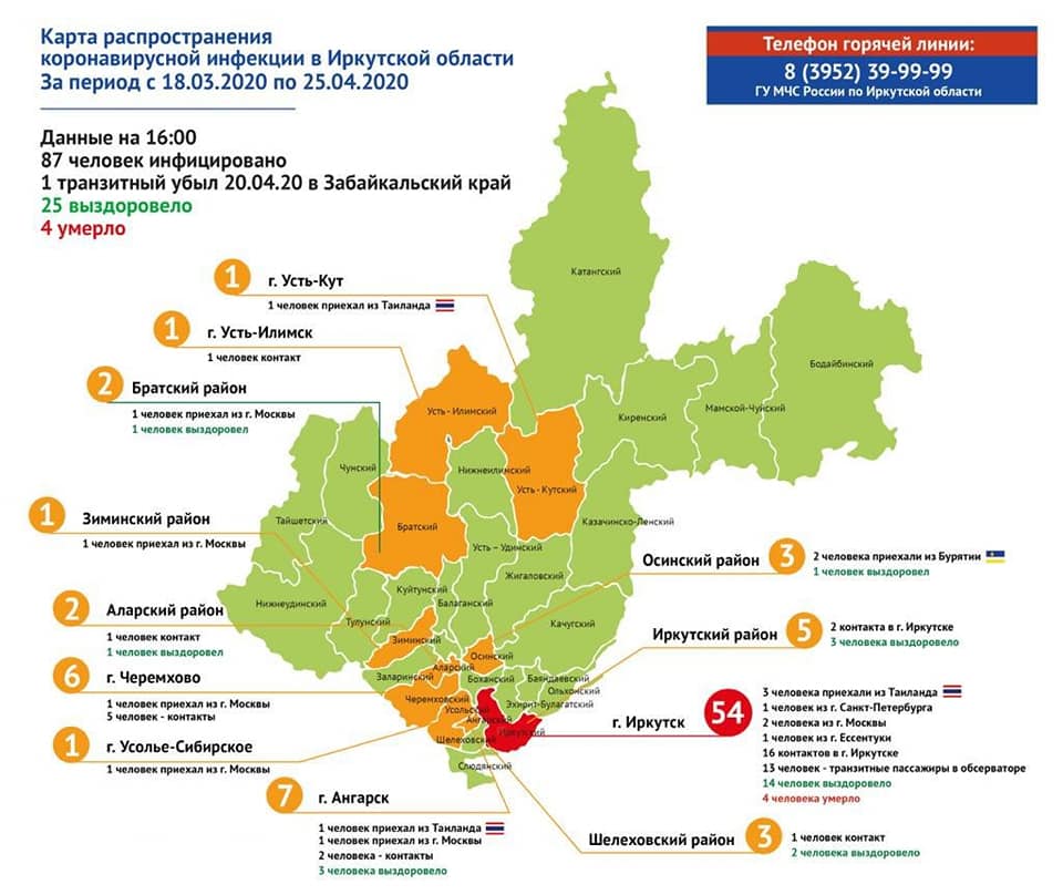 Оперативная информация по коронавирусу, карта распространения по Иркутской области