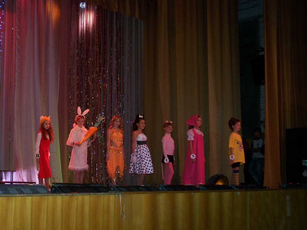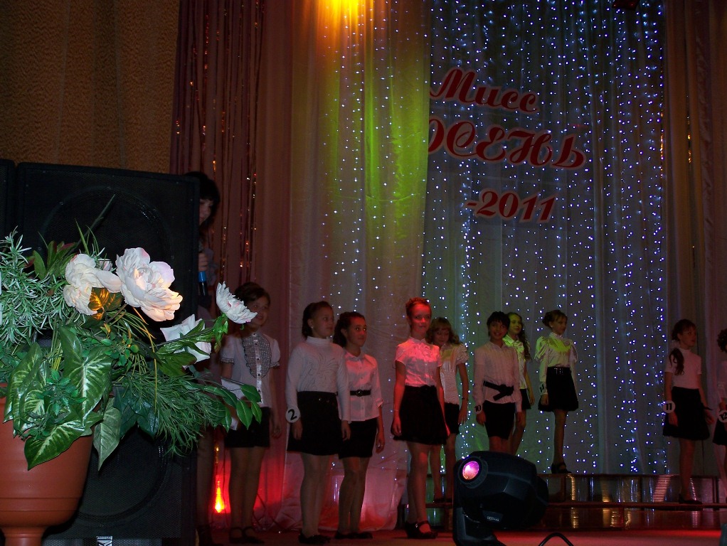 На сцену Дворца культуры впервые вышли столь юные соискательницы титула "Мисс осень". В предыдущие годы традиционный конкурс проводился среди старшеклассниц, в прошлом году - среди семиклассниц. Желающих участвовать в конкурсе набралось 14 девочек: из гимназии №1, третьей и четвертой школ. Многочасовые репетиции, предваряющие конкурс, не прошли даром - зрителям и болельщикам было представлено яркое шоу. Девочки представляли себя в "визитке" и спортивном конкурсе, читали стихи, оформляли "сотовые телефоны" и, конечно же, - дефилировали в вечерних нарядах. Жюри выпала сложная задача - выбрать лучшую среди принцесс. Каждая девочка была награждена лентой в своей номинации:"Мисс Нежность", "Мисс Авангард" и пр.и мягкой игрушкой от спонсоров. В тройку победительниц вошли Полина Баранец из гимназии №1 и Яна Юревич из школы №4. Ленту "Мисс осень" и корону получила Кристина Чеботарева (гимназия №1). Прекрасный зрелищный конкурс организовала методист ДК "Юность" Марина Вологдина, помогали ей ребята из ТОС (творческий союз старшеклассников).