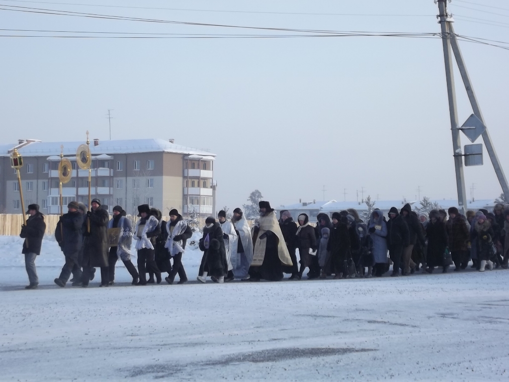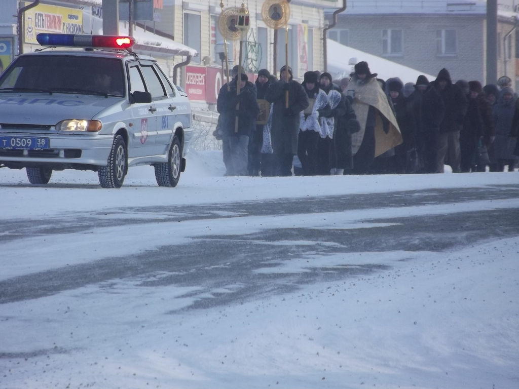 По улицам города прошёл Крестный ход. Примерно полсотни православных саянцев во главе со священниками Благовещенского храма вышли за пределы церковной ограды, чтобы возвестить о празднике Богоявления, который совершается 19 января в память Крещения Иисуса Христа в водах Иордана. Молитвенное шествие прошло от храма по улице Дворовкина к автостанции, затем по Советской до МЖК, где, повернув налево, вышло на Ленинградский проспект и вернулось в храм. Там в морозный день состоялось освящение воды, которую тут же стали набирать верующие. К освященной в Крещенский день воде особое отношение: она почитается великой святыней, которая несёт людям силу Божией благодати. За святой водой к воротам Благовещенского храма саянцы шли весь день.
