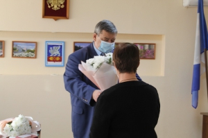 Дед Мороз в лице мэра Саянска Олега Боровского, со своей помощницей-Снегурочкой – представителем благотворительного фонда Полиной Суриной – вручили подарки для городской больницы – 25 пульсоксиметров, а также сладкие подарки для детей медицинских работников, которые борются с ковидом.