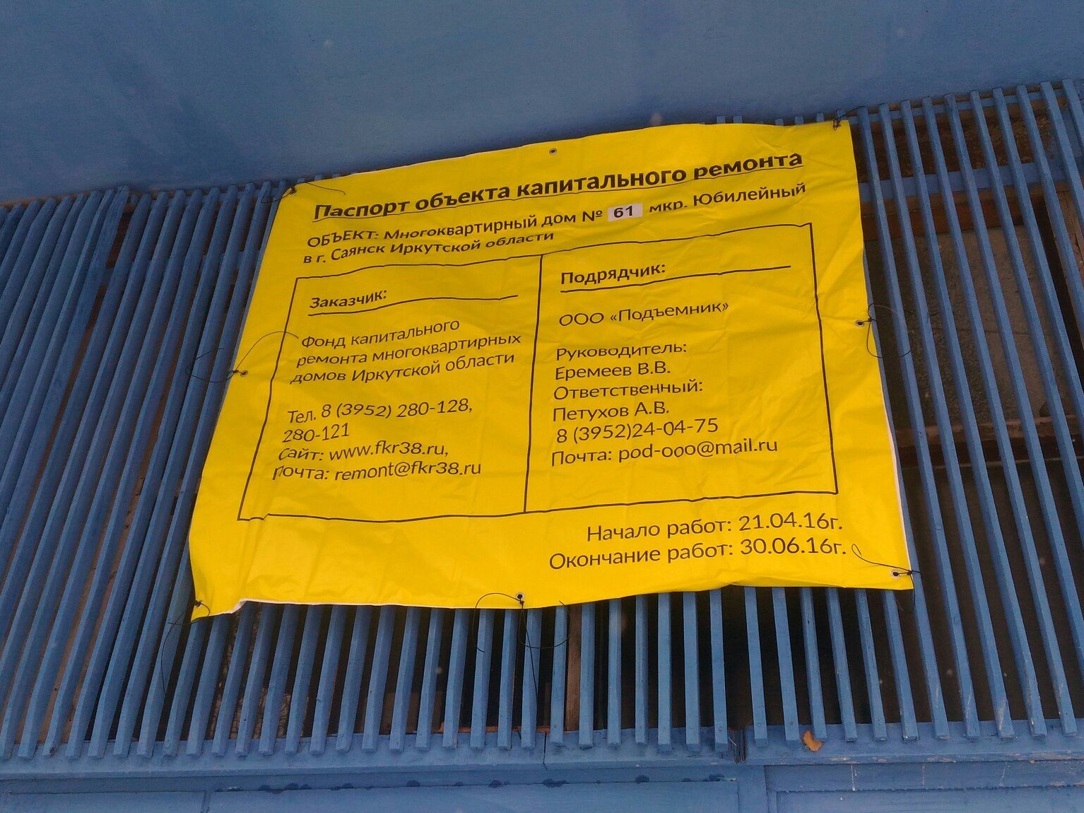 Конкурс по привлечению подрядных организаций для оказания услуг и выполнения работ по проведению капитального ремонта общего имущества указанных многоквартирных домов состоялся еще 29 декабря 2015 года. Его организатором выступил Фонд капитального ремонта Иркутской области. В перечень работ (объекты капитального ремонта) включены: разработка проектной документации, ремонт внутридомовых инженерных систем, ремонт системы теплоснабжения, холодного и горячего водоснабжения, водоотведения (канализации), ремонт крыши и подвальных помещений. Стоимость контракта составила 35 млн 265 тыс. рублей. Тендер выиграла иркутская компания ООО «Система». Работы по капитальному ремонту общего имущества в многоквартирных домах компанией проведены и проводятся в Зиме, Усть-Куте и Братске. Помимо фронта общих работ, в доме № 61 м-на Юбилейный будет заменено лифтовое оборудование. Его ремонт проведет подрядная организация – ООО «Подъемник» (Иркутск). Цена вопроса – 1 млн 79 тыс. рублей. Срок выполнения – до 30 июня 2016 года.