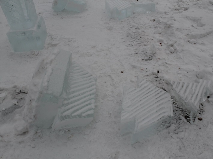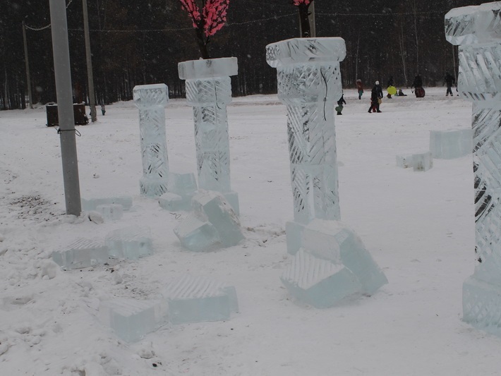 Возразить здесь сложно. Город выделяет средства, чтобы создать зимнюю сказку для всех маленьких и взрослых жителей, приглашаются профессионалы, привезен лед реки Ангары – прозрачный и голубой, большинство горожан с нетерпением ждут, когда сказочное «Тридевятое царство» будет готово. А всю эту хрупкую красоту, оказывается можно разрушить всего за несколько бессмысленных ударов.