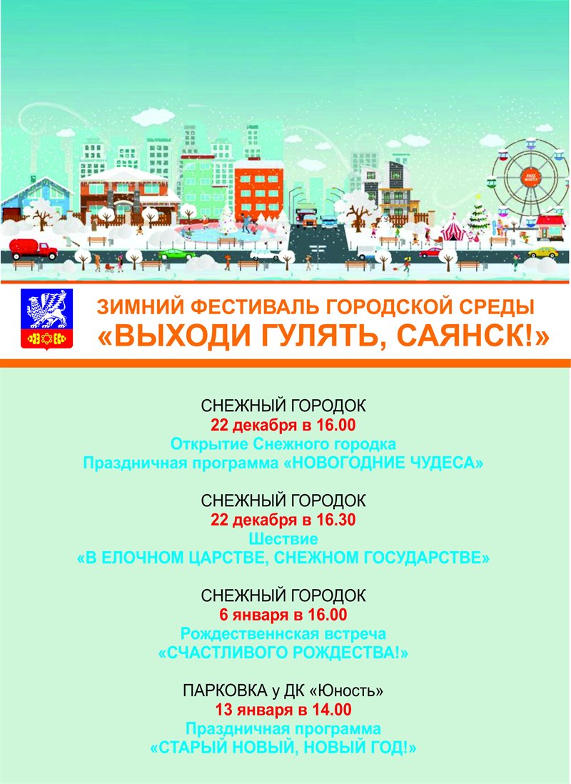 С 22 по 13 января в Саянске пройдет зимний фестиваль городской среды "Выходи гулять, Саянск!"