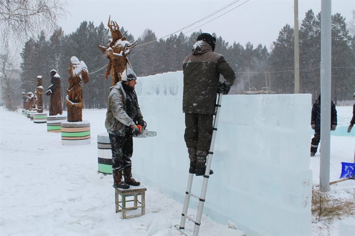 Строят ледяную сказку. В субботу на площадку Снежного городка завезли первую партию льда, а во вторник здесь уже заметно выросли ледяные стены. Команда мастера из Байкальска Андрея Пылюха дружно работает, чтобы создать саянцам праздник. В работе также принимает участие саянский художник Николай Скареднев. Он в этом году будет вырезать фигуры Деда Мороза и Снегурочки.