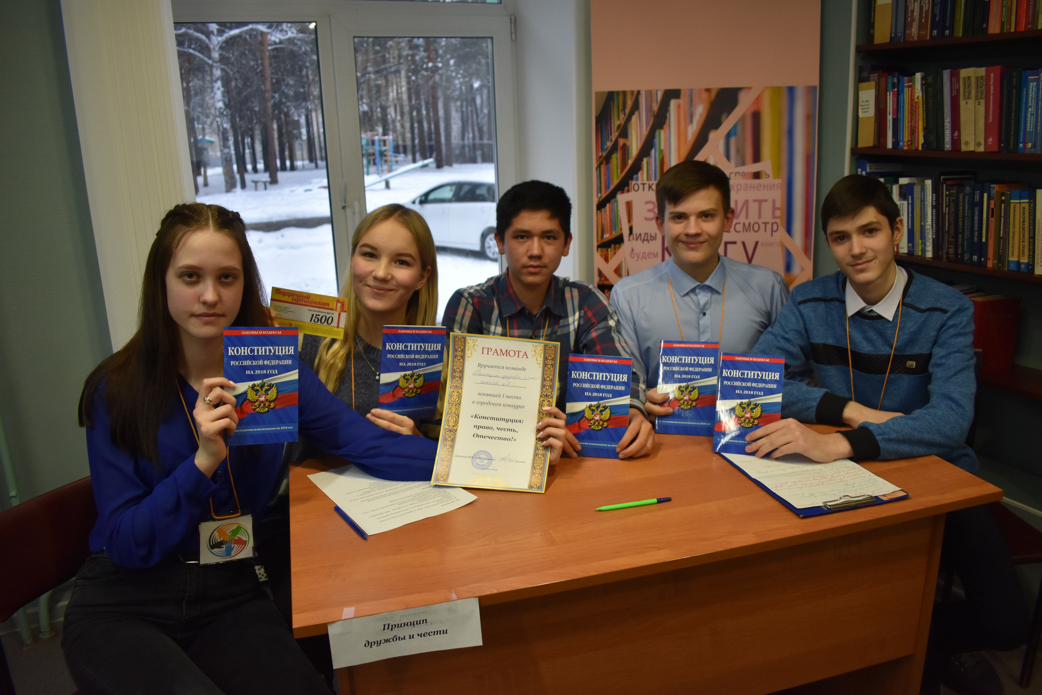 В читальном зале городской библиотеки прошла интеллектуальная игра «Конституция: право, честь, Отечество», организованная сотрудниками библиотеки, членами молодежного парламента городской думы при содействии отдела по физкультуре, спорту и молодежной политике.