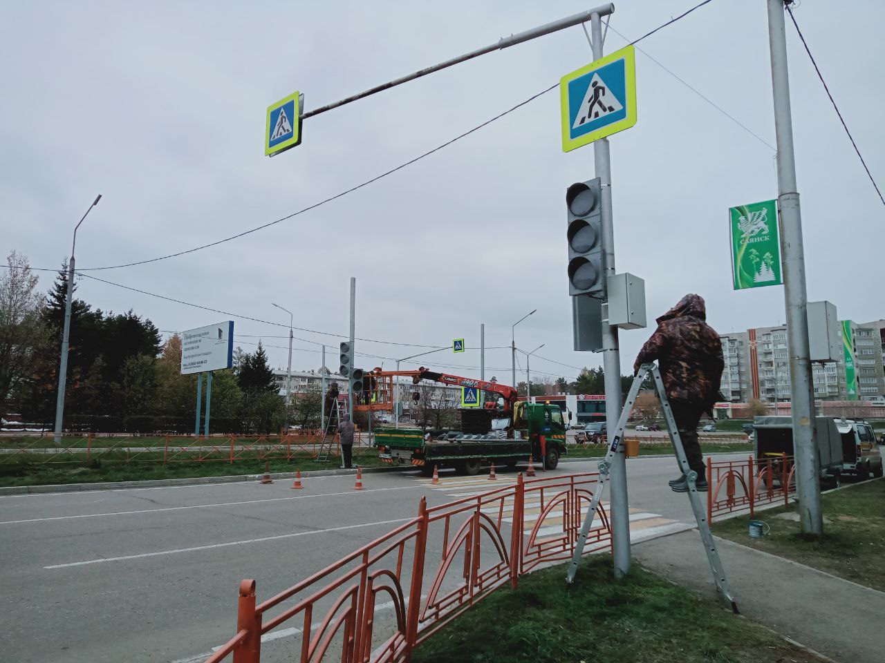 На пешеходном переходе между Дворцом культуры «Юность» и Химико-технологическим техникумом установлен светофор. Он активируется по требованию человека с помощью нажатия кнопки, а не по стандартному циклу.