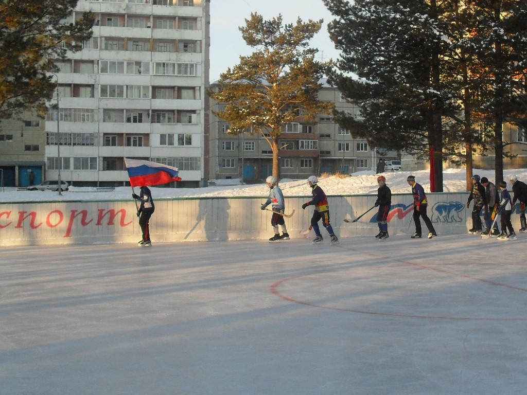 С раннего утра в воскресенье на корте ДСК «Искра» в микрорайоне Ленинградский кипела работа: вставшие на коньки мальчишки чистили ледяное поле, разворачивали флаги, встречали гостей. В одиннадцать часов здесь состоялось торжественное открытие нового хоккейного сезона и посвященное этому первенство города по хоккею с мячом. Юные хоккеисты праздновали долгожданное событие вместе с шефами из ООО «Саянский бройлер». Олимпийских побед пожелала спортсменам начальник отдела социального развития предприятия М.Н.Ляпина.